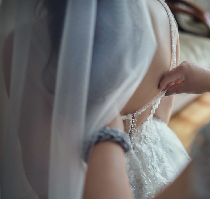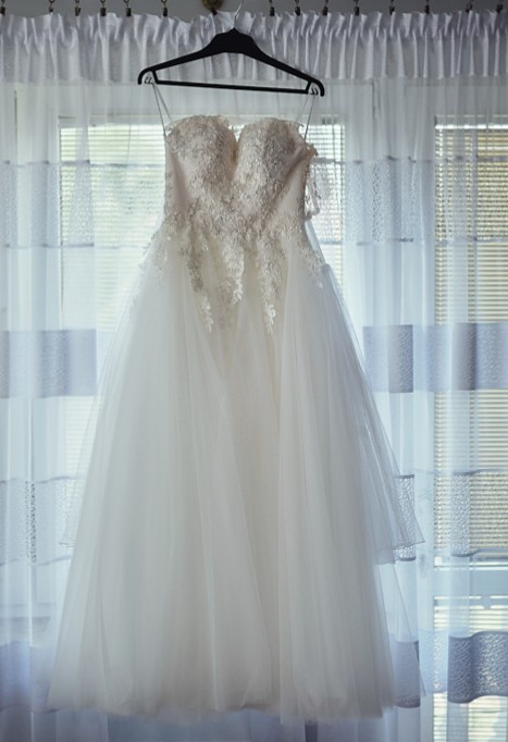 Po ślubie i sesji zdjęciowej suknia została oddana do salonu Diana do prania i profesjonalnej renowacji, więc teraz jest jak nowa.