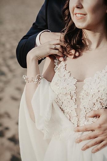 Do sprzedania mam śmietankową suknię ślubną, która prezentuje się nieziemsko. Mój wzrost to 164cm, na weselu miałam do sukienki 7cm szpilki. Rozmiar to 34/36. Dół sukienki jest tiulowy (kilka warstw tiulu na sobie- pięknie wiruje w tańcu), natomiast góra to koronka z delikatnym połyskiem na cielistej siateczce. W sukienkę wszyte są także miseczki w kolorze cielistym, których nie widać. Sukienka jest po praniu w stanie idealnym. Jeżeli ktoś jest zainteresowany szczegółami, to proszę o kontakt. Sukienka jest do przymierzenia w Warszawie.