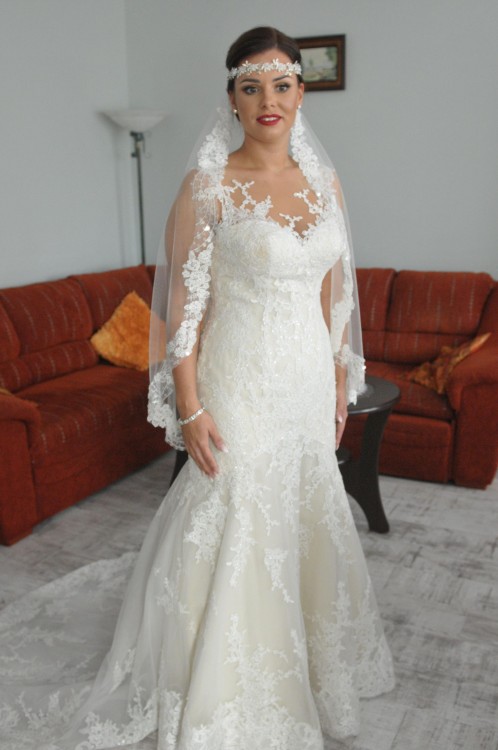 Witam, mam na sprzedaż suknię ślubną z kolekcji australijskiej projektantki Stelli York, w kolorze nudę. Rozmiar 38/40. (była poszerzana z rozmiaru 38-o 4cm, stąd uważam, że jest to rozmiar duże 38 bądź rozmiar 40). Suknia na wzrost 170cm+5cm obcas. Bardzo porządnie wykonana, suknia posiada delikatne cekiny, których nie widać na zdjęciach. Sprzedaję w komplecie z welonem.