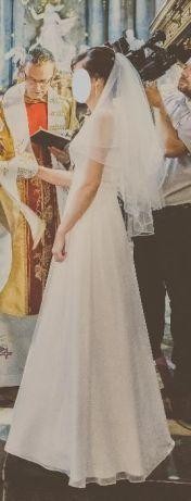 Suknia w bardzo dobrym stanie, jest po praniu chemicznym w profesjonalnej pralni. Gratis dołączam halkę z kołem oraz oryginalny pokrowiec z salonu Nabla.