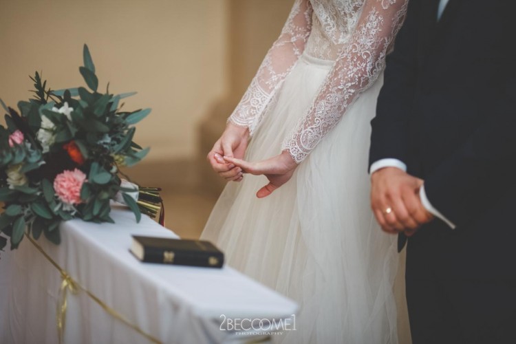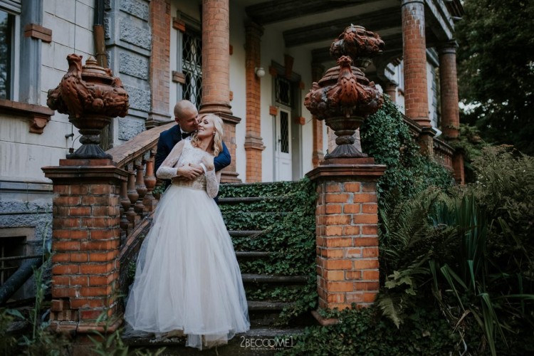 Suknia jest bardzo lekka i zwiewna- góra wykonana z mięciutkiej ręcznie wyszywanej koronki, z wycięciem na plecach, dół zaś składa się z kilku warstw tiulów.