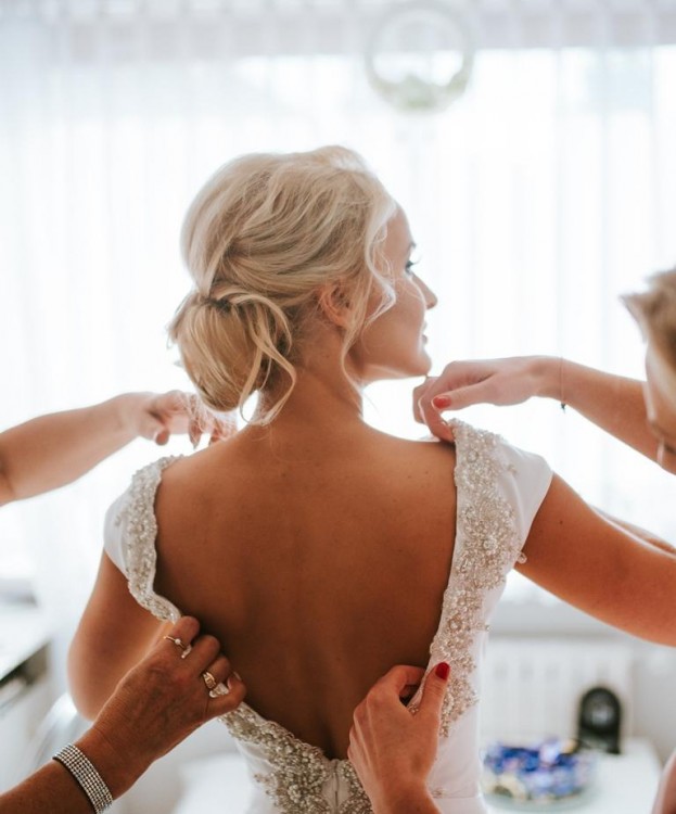 wycięcie: plecy wycięte w "V", obszyte kryształkami i perełkami