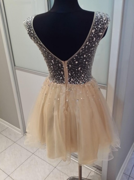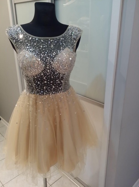 Witam mam do sprzedania piękna sukienkę założona tylko raz na poprawiny więc jest jak nowa.Sukienka była kupiona w butiku MARINA Suknie Wieczorowe- Ptak. Ma piękny złoty kolor, rozmiar to S-M , przezroczystą górę(na siatce poprzyszywane drobne kryształki) Pięknie układa się na sylwetce . Pytania proszę pisać na priv . Cena w butiku to 600zl. Podana cena do negocjacji.