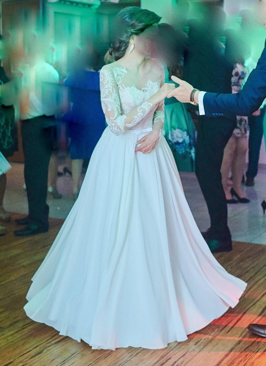 Muślinowy, zwiewny dół, świetnie układa się podczas tańca.