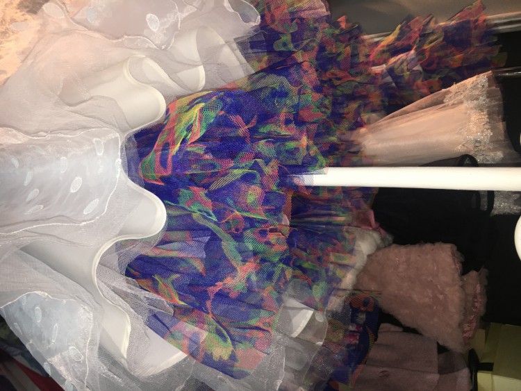 Suknia Coco przerobiona w bogato zdobione kolorowe tiule, góra-gorset możliwość regulacji, jedyna taka robiona na zamówienie.