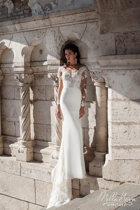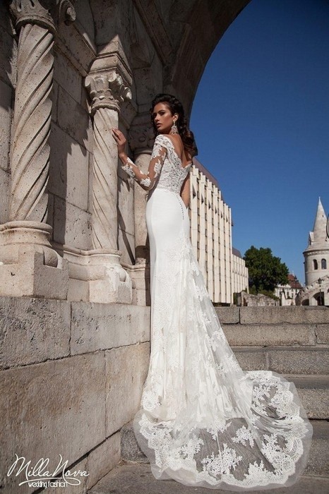 Piękna suknia marki Millanova, z pięknym długim podpinanym trenem i pięknie zdobionym dekoltem.