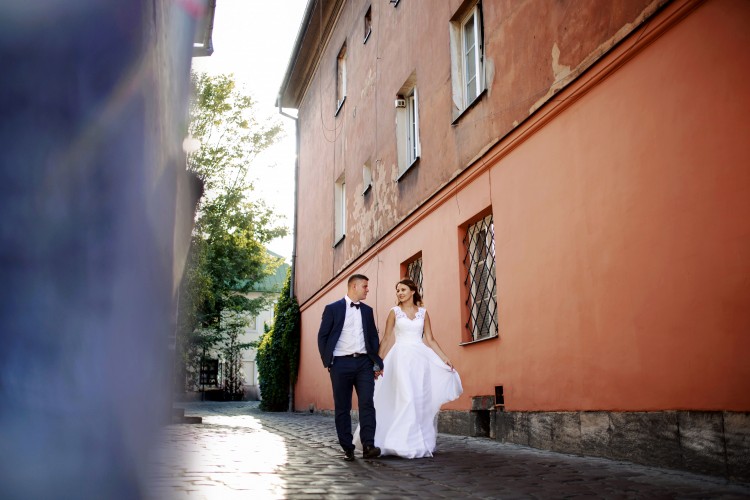 Mam do zaoferowania piękną białą suknie ślubną, uszytą na miarę w salonie sukien ślubnych Marigold w Krakowie. Suknia szyta na wzrost 171 obcas 7 cm, talia ok. 72, góra z koronki a plecy wycięte w v, dół z tiulu. Suknia pięknie się prezentuje i jest bardzo wygodna, założona na ślub i plener.W cenie: sunia, welon i ozdoby do włosów.