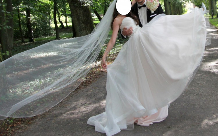 Suknia posiada przepiękny tren, który w łatwy sposób się podpina.