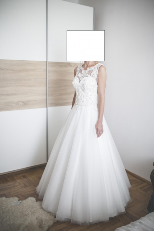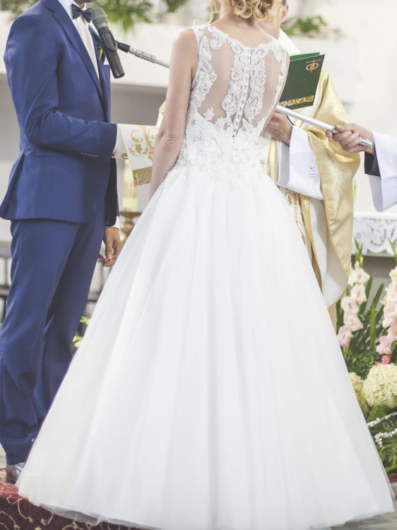Suknia ślubna w bardzo dobrym stanie, bardzo wygodna na całą noc zabawy. Wyprana w pralni, gotowa do mierzenia.