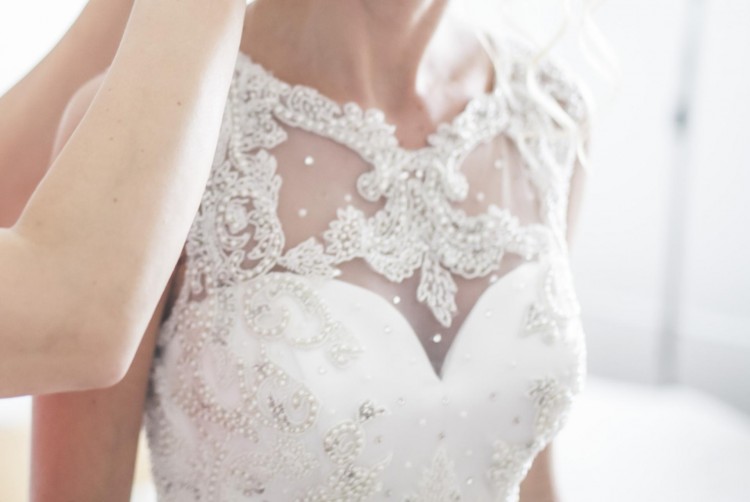 Kolor śmietankowy, rozmiar 34 (biust 82, pas 61, biodra 86, długość 146 cm). Dla pań mierzących około 160 cm wzrostu. Suknia zapinana na pas i guziki, bardzo dobrze się trzyma, jest wygodna. Do sukni jest dodatkowo spódnica z kołem, welon (niezdobiony) i ozdoba do włosów - zrobiona z takich samych kamyczków jakie są na sukni. Wszystkie zdobienia na sukni są szyte ręcznie. Suknia ubrana raz (bez sesji), jest w bardzo dobrym stanie. Suknia po praniu w pralni.