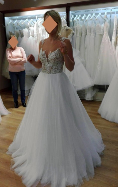 Suknia została założona 2 razy - podczas ślubu oraz sesji zdjęciowej. Nie sprawiała żadnych kłopotów – jest bardzo lekka i wygodna