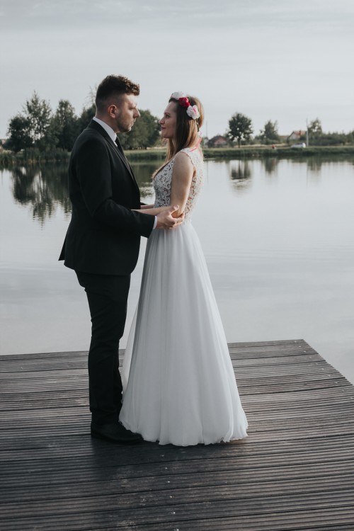 Suknia szyta na wzrost 167 cm + 10 cm obcas , rozmiar 36/38 , kolor Ivory. Suknia jest bardzo wygodna , nie krępuje ruchów oraz nie przeszkadza w tańcu.