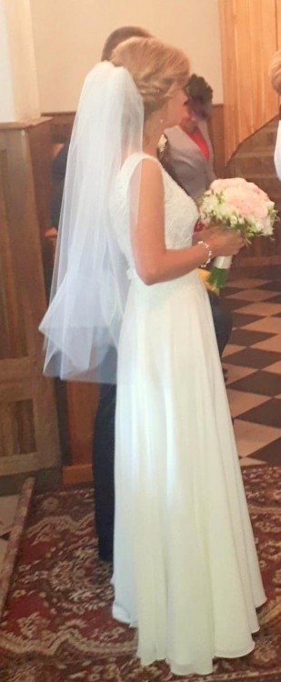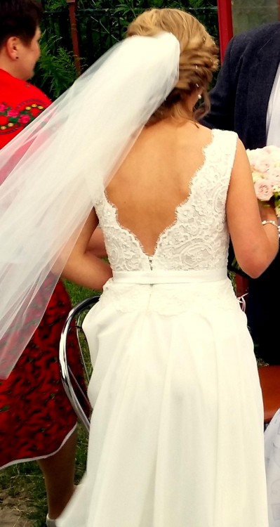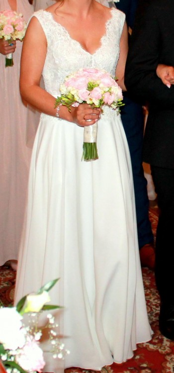Suknia ślubna Alina Margarett szuka nowej właścicielki. Suknia bardzo lekka, zwiewna pięknie układa się w tańcu oraz podczas chodzenia.