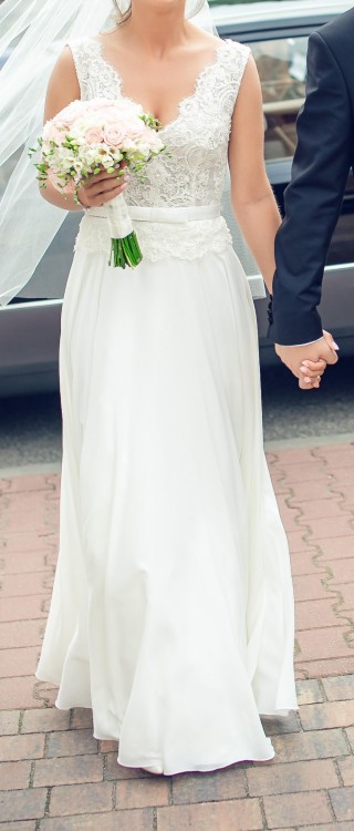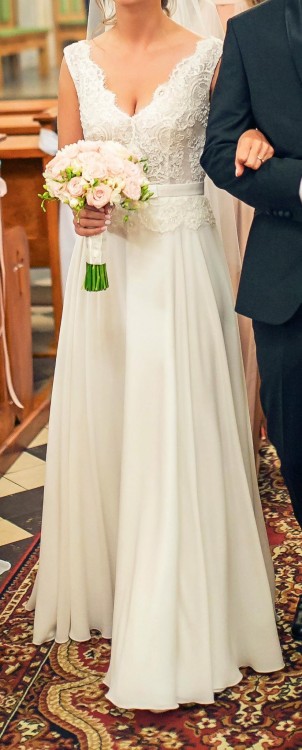 Suknia ślubna Alina Margarett szuka nowej właścicielki. Suknia bardzo lekka, zwiewna pięknie układa się w tańcu oraz podczas chodzenia.