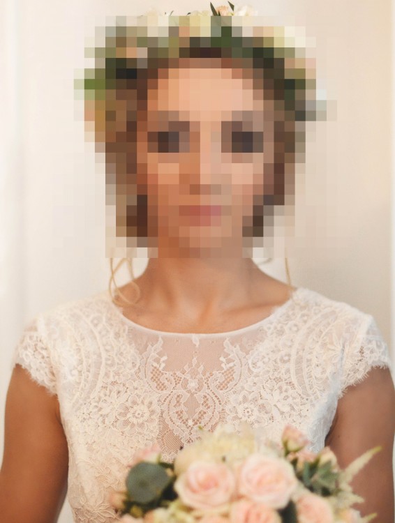 - suknia nie ma wszytych miseczek ze względu na odcień, którego standardowo używa producent - odcinały się i były widoczne przez koronkę