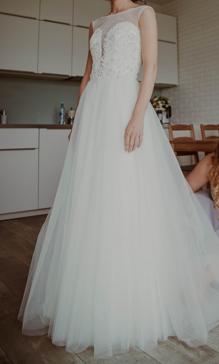 Mam do sprzedaży cudowną suknię ślubną (kolor ivory), która była szyta na miarę (rozmiar 34 - wzrost 160 cm + 7.5 cm buty). Jest to model unikatowy, którego nie można dostać w żadnym salonie. Został utworzony z kilku innych sukienek.