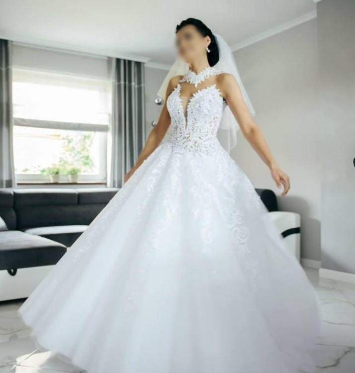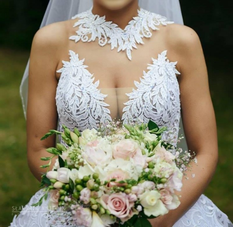 Mam do sprzedania białą suknię ślubną w stanie idealnym. Była szyta w zeszłym roku w salonie Agora we Wrocławiu. Sukienka jest unikatowa, jest to połączenie dwóch modeli z pomysłem własnym. Suknia posiada oryginalne kryształy Swarovskiego na gorsecie w dużej ilości. W zestawie razem z suknią sprzedam koło w rozmiarze 2, ozdobę na szyję przechodząca przez plecy, aż do gorsetu ( możliwość odpięcia ozdoby) oraz welon. Suknia została wyczyszczona w salonie Agora, i nadaje się do użytku. Poniżej przesyłam dokładne wymiary. Proszę o kontakt tylko zainteresowane osoby.