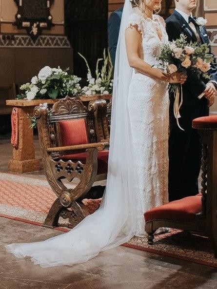 Suknia po profesjonalnym czyszczeniu. W zestawie 1,5m tiulowy welon.
