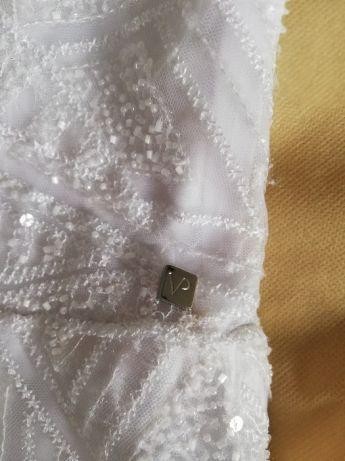 Sprzedam suknie ślubną zakupioną w salonie Violi Piekut w Warszawie. Pochodzi z kolekcji z 2017 r. Suknia w kolorze białym, posiada długi, podpinany zewnetrznie tren. Na plecach łańcuszek z kamieni Swarovskiego. Romantyczna, eteryczna, a zarazem kobieca.