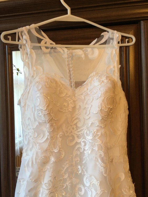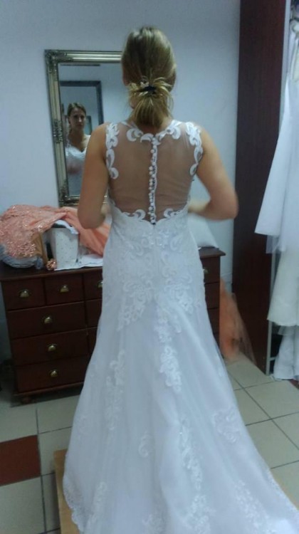 Piękna suknia wykonana na zamówienie wg własnego projektu w jednym z koszalińskich salonów mody ślubnej. Kształt syreny, śmietankowa biel, piękny długi tren z możliwością podpięcia. Suknia niezwykle miękka i wygodna, wspaniałe układa się w tańcu, nie krępuje ruchów. Wszystkie elementy koronkowe naszywane ręcznie. Tył sukni zapinany na zamek i urocze guziczki, aplikacje naszyte na cieniutka mgiełkę dającą efekt gołej skóry. Użyta raz na ślub i wesele oraz sesję w dniu ślubu. Wyprana, brak śladów użytkowania. Cena w salonie- 4000 zł, umowa kupna do wglądu. Dodatkowo długi welon typu hiszpańskiego z koronką taka samą jak na sukni. Brak konieczności użycia dodatkowej halki, ponieważ jest wszyta w suknię. Stanik- miseczka F, możliwość odpięcia i wszycia swojego. Rozmiar 36, wzrost 163, obcas ok 7 cm. Możliwość dopasowania do sylwetki. Przymiarki Koszalin i okolice, chętnie prześlę więcej zdjęć osobom zainteresowanym ogłoszeniem.