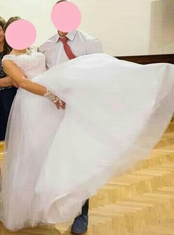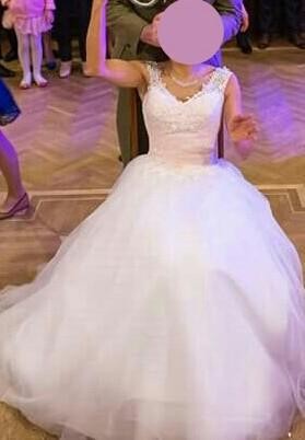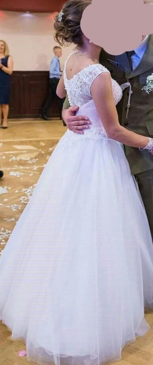 Do sprzedania śliczna suknia ślubna rozmiar S-XS dla zgrabnej drobnej dziewczyny(wysokosc do 160 z lekkim obcasem)