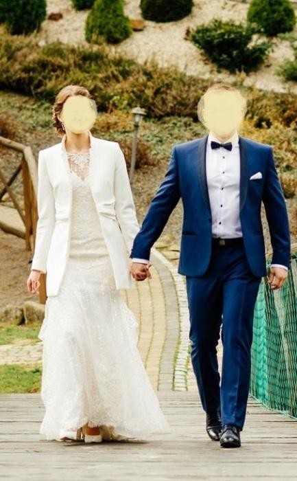 -biały płaszczyk, który wspaniale pasuje do suknii