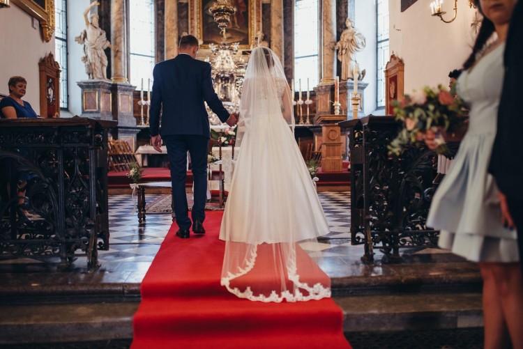 Klasyczny, długi welon z delikatnym zdobieniem - dorzucam gratis.