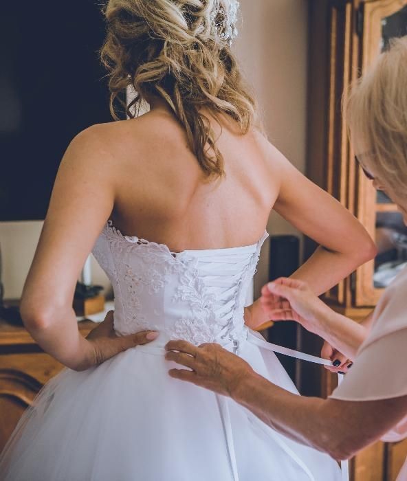 Suknia prezentuje się przepięknie, przykuła uwagę wszystkich gości. Szczerze polecam! Ja czułam się w niej na prawdę wyjątkowo.