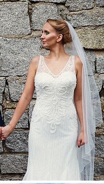 Jest to tiulowa suknia z ręcznie wyszywanymi koralikami, które tworzą cudowny delikatny wzór.