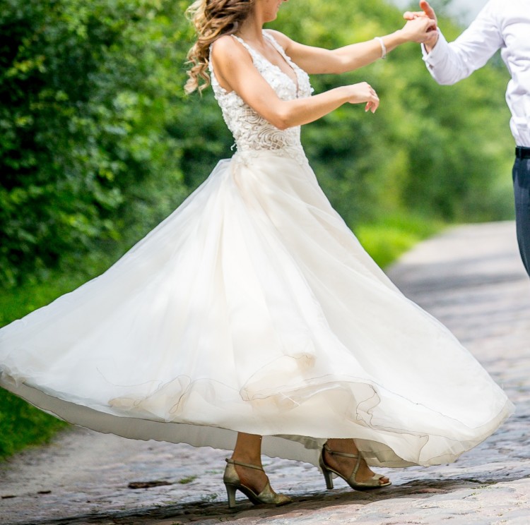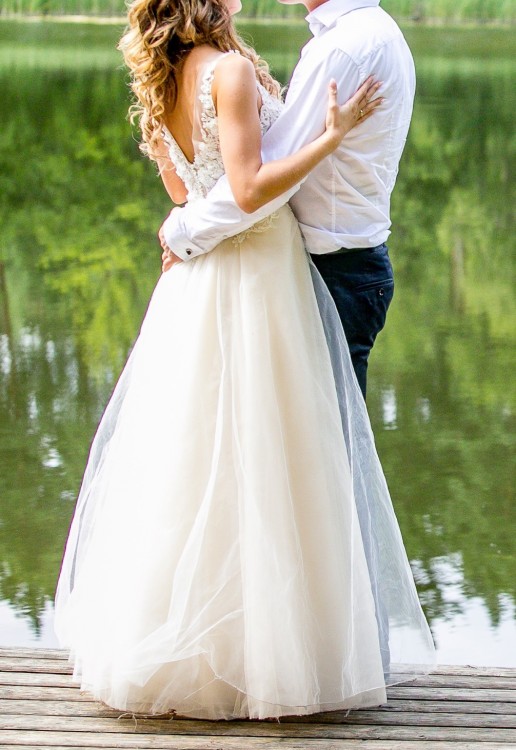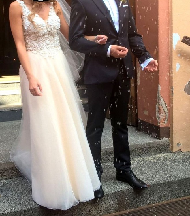 Szyta na wzrost 170 cm + 7,5 cm obcas. Suknia zakupiona w nowosolskim salonie.