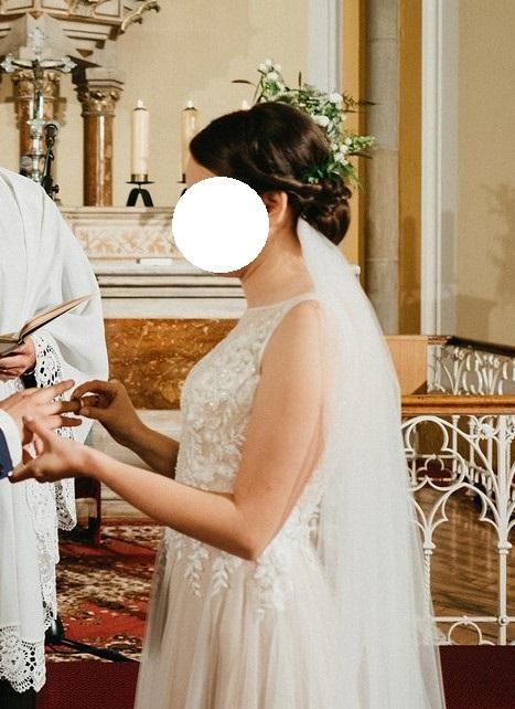 Gratis dodaję 2-metrowy welon, pięknie prezentujący się podczas przejścia do ołtarza.