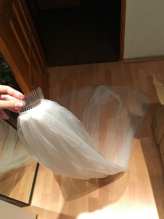 Do sukni posiadam również 2 metrowy gładki welon na grzebieniu, dopasowany kolorystycznie do sukni.