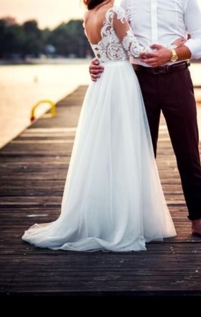 Sprzedam piękną i wyjątkową białą suknię ślubną, szytą od zera według indywidualnego projektu - drugiej takiej nie ma :)