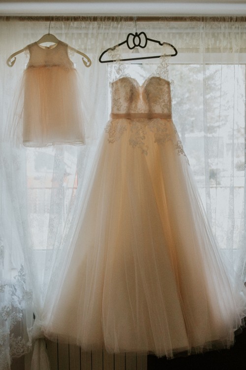 Wyjątkowa suknia szyta na miarę, pudrowy tiul- rozmiar 34-36