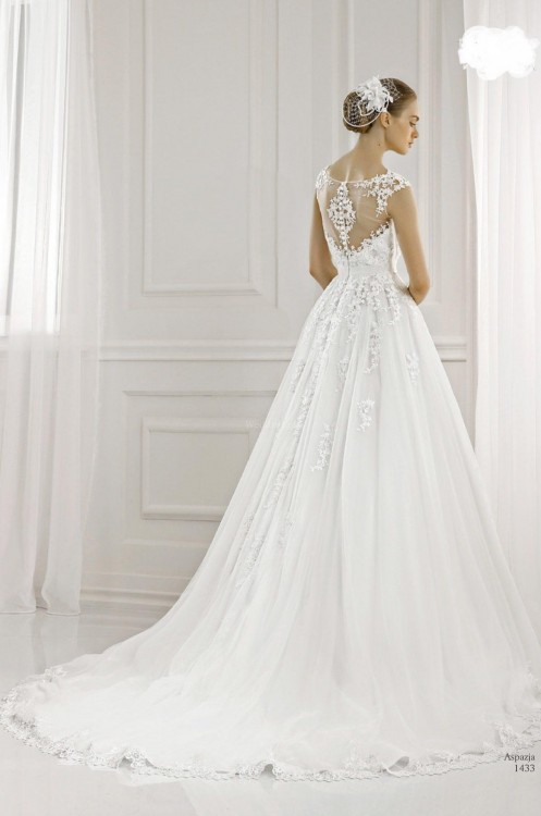 Sprzedam suknię ślubną w kolorze ivory, model Sposabella ASPAZJA z trenem oraz dodatkowo welon z kryształkami Svarowsky oraz koło.