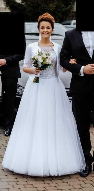 Mam do sprzedania suknię ślubną. Gorset wysadzany kryształkami i koralikami, pięknie odbija światło i robi ogromne wrażenie :)