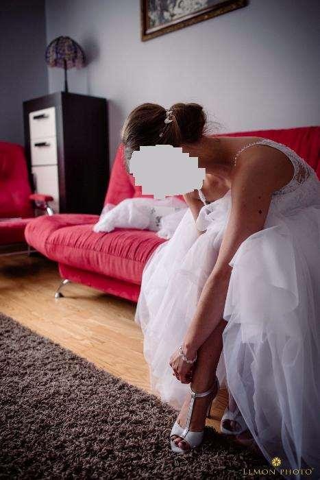 Sukienka w świetnym stanie, wyprana w profesjonalnej pralni, zapakowana w oryginalny pokrowiec. Została założona 2 razy na ślub i sesję plenerową.