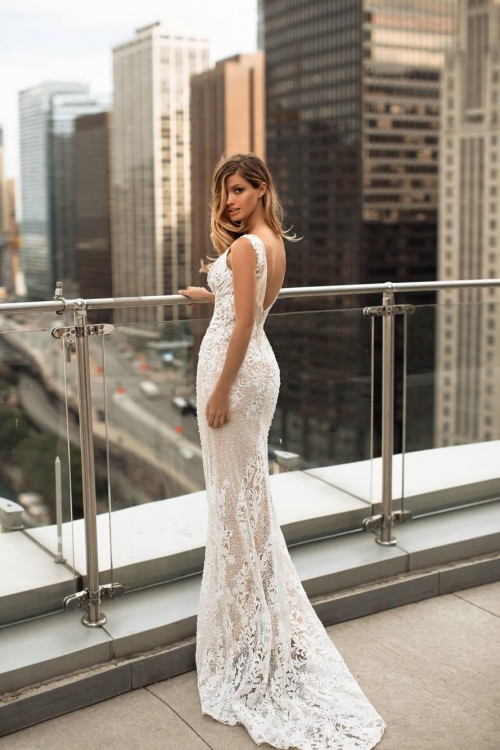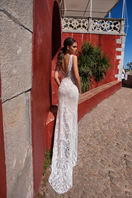 Wspaniała koronkowa, bogato zdobiona suknia włoskiego projektu domu Milla Nova zachwyca charakterem. Nieprzypadkowo projekt ten znalazł się, aż w dwóch kampaniach marki – Chicago i Sintra, i tak jak te dwa miasta suknia jest zarazem nowoczesna jak również oryginalna. Wykonana z dbałością o detale, nadaje charakteru, a jednocześnie zachwyca ponadczasową elegancją.
