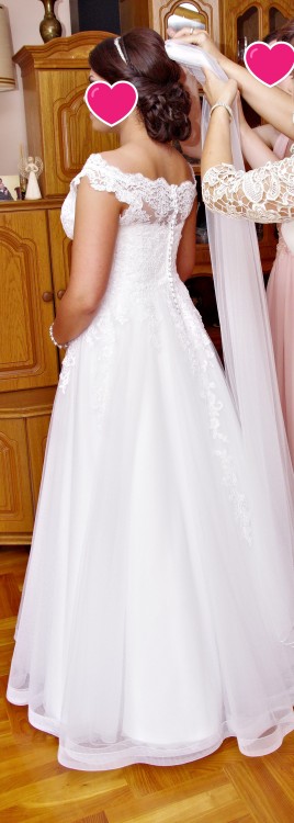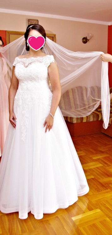 Do sukni dołączony jest delikatny długi welon na grzebyku oraz pokrowiec. Ręczne, profesjonalne czyszczenie sukni odbyło się w Pracowni, w którym została uszyta. Suknia jest w stanie idealnym, nie posiada zniszczeń.