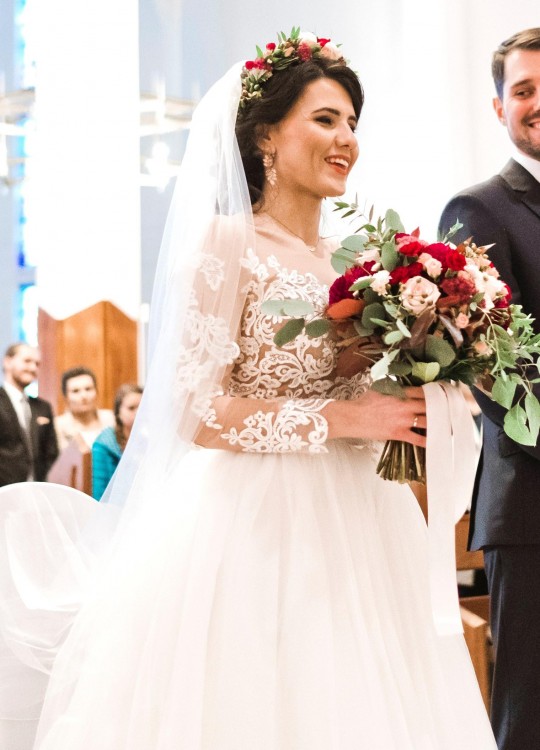 Chętnie podeślę więcej zdjęć oraz filmiki, na których widać suknię w tańcu oraz z rozpuszczonym trenem w kościele.
