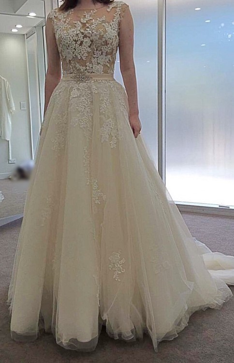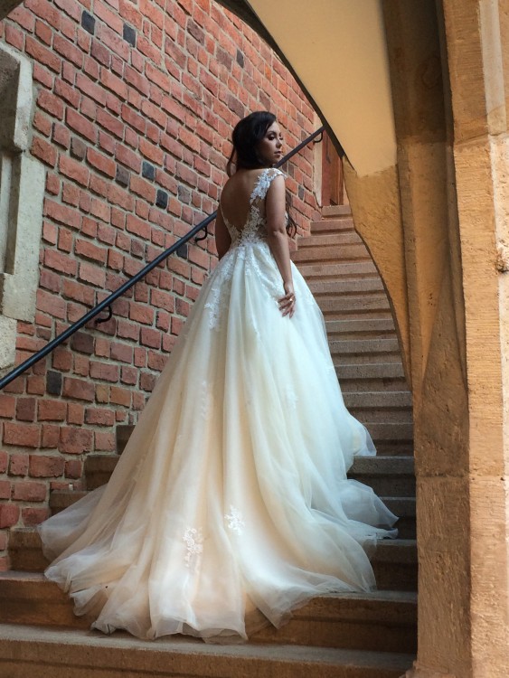 w ostatnim tygodniu sierpnia 2017 roku. Miałam ją założoną dwa razy: podczas ślubu i wesela dnia 2 września 2017 roku oraz podczas sesji zdjęciowej wykonywanej w Krakowie. Suknia jest w bardzo dobrym stanie, nie jest uszkodzona. Była użytkowana normalnie- w czasie sesji nie chodziliśmy po piasku, nie wchodziliśmy do wody.