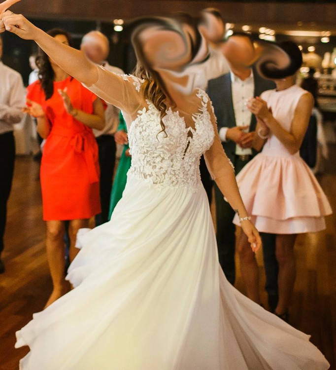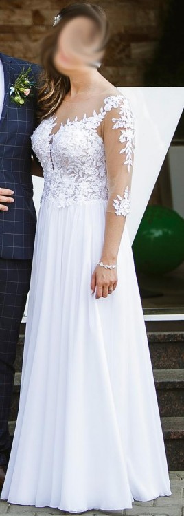 Sprzedam piękną suknię w idealnym stanie kupioną w salonie w Opolu za 4450 zł (posiadam dowód zakupu). Kupiona pod koniec kwietnia tego roku, ślub odbył się na początku maja. Założona 2 razy (ślub, sesja). Wyprana w pralni chemicznej. Suknia jest bardzo wygodna! Pięknie układa się w tańcu i zrobiła ogromne wrażenie na gościach :) Kolor- biel, rozmiar 38, wzrost 169 cm+ 8 cm obcas (bez problemu można ją skrócić). Ma doczepiany tren, który z łatwością się odpina, wszyte miseczki rozmiar C/D ( nie ma potrzeby zakładać dodatkowo biustonosza). Ciężko i się z nią rozstać ale może komuś jeszcze się przyda :) Zapraszam na przymiarki :) mój numer telefonu: 600 183 600