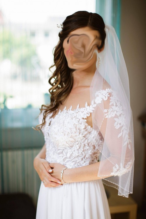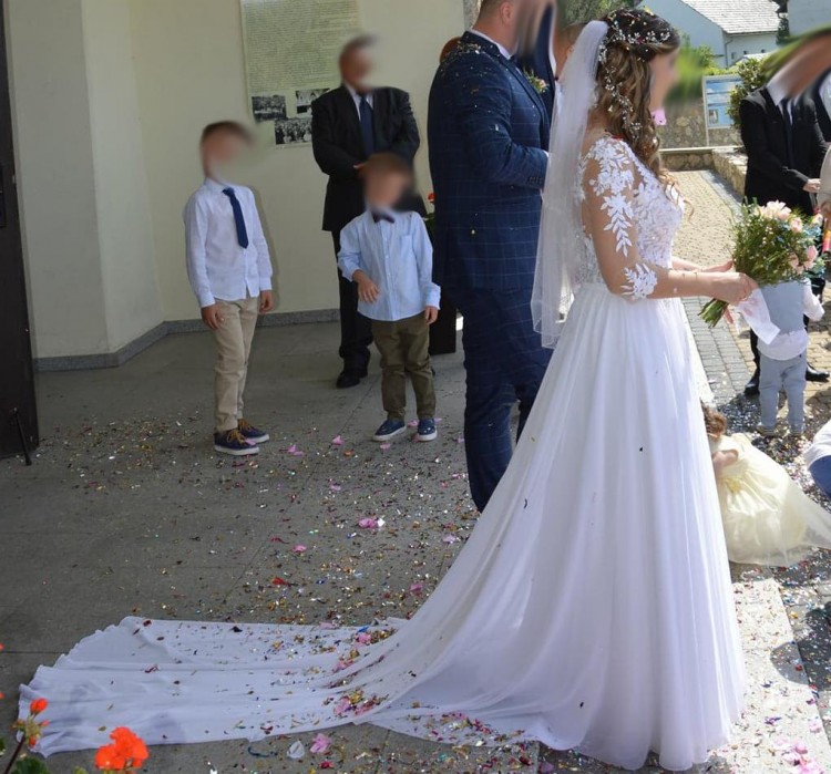 Piękna, zwiewna Suknia ślubna z odpinanym trenem, rozm 38, wzrost 169+ obcas 8cm