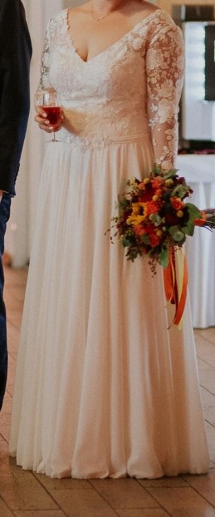 Suknia jest świeżo wyczyszczona, jak nowa.